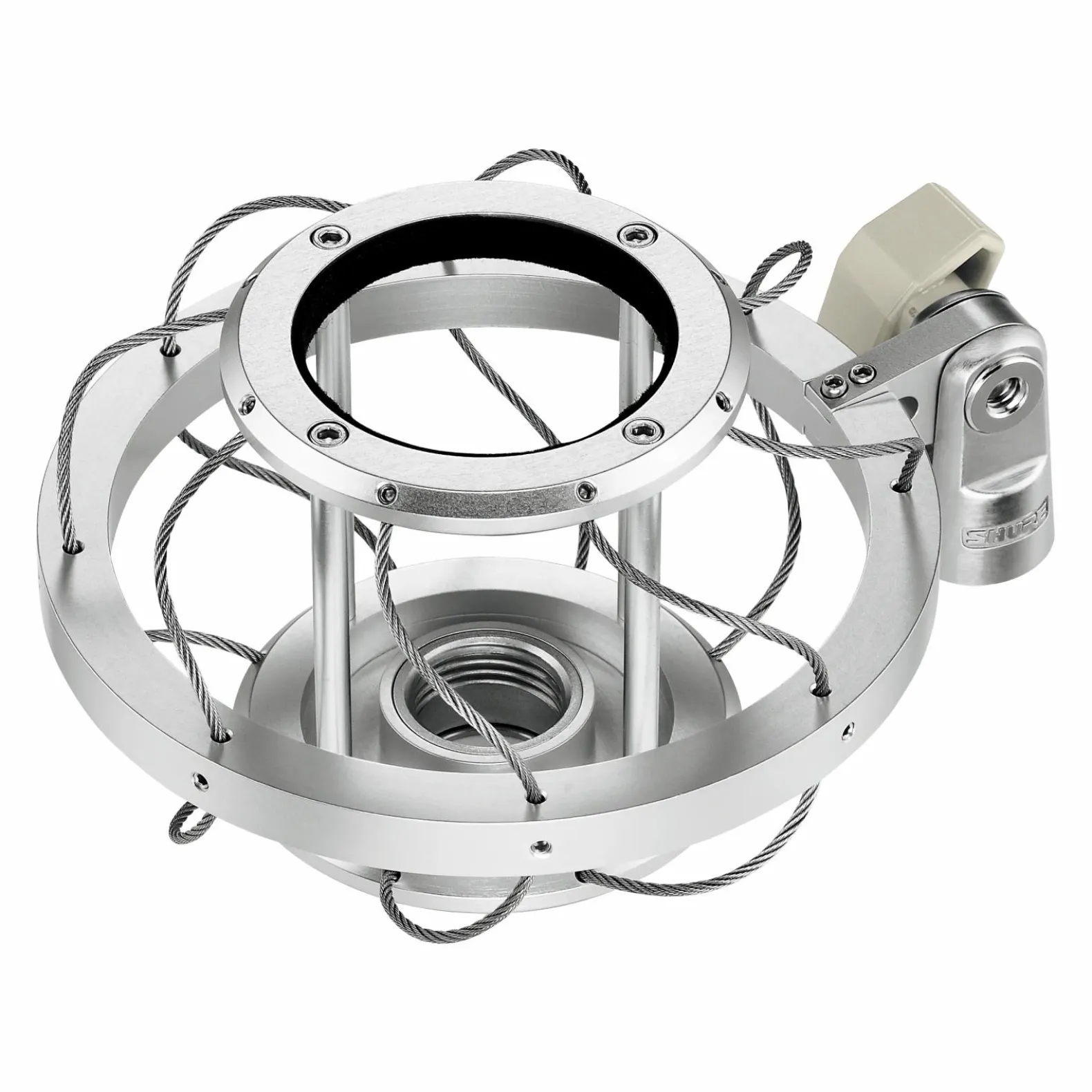 Wire rope shock mount provides secure thread-lock mounting with maximum isolation for KSM353/ED Microphones.