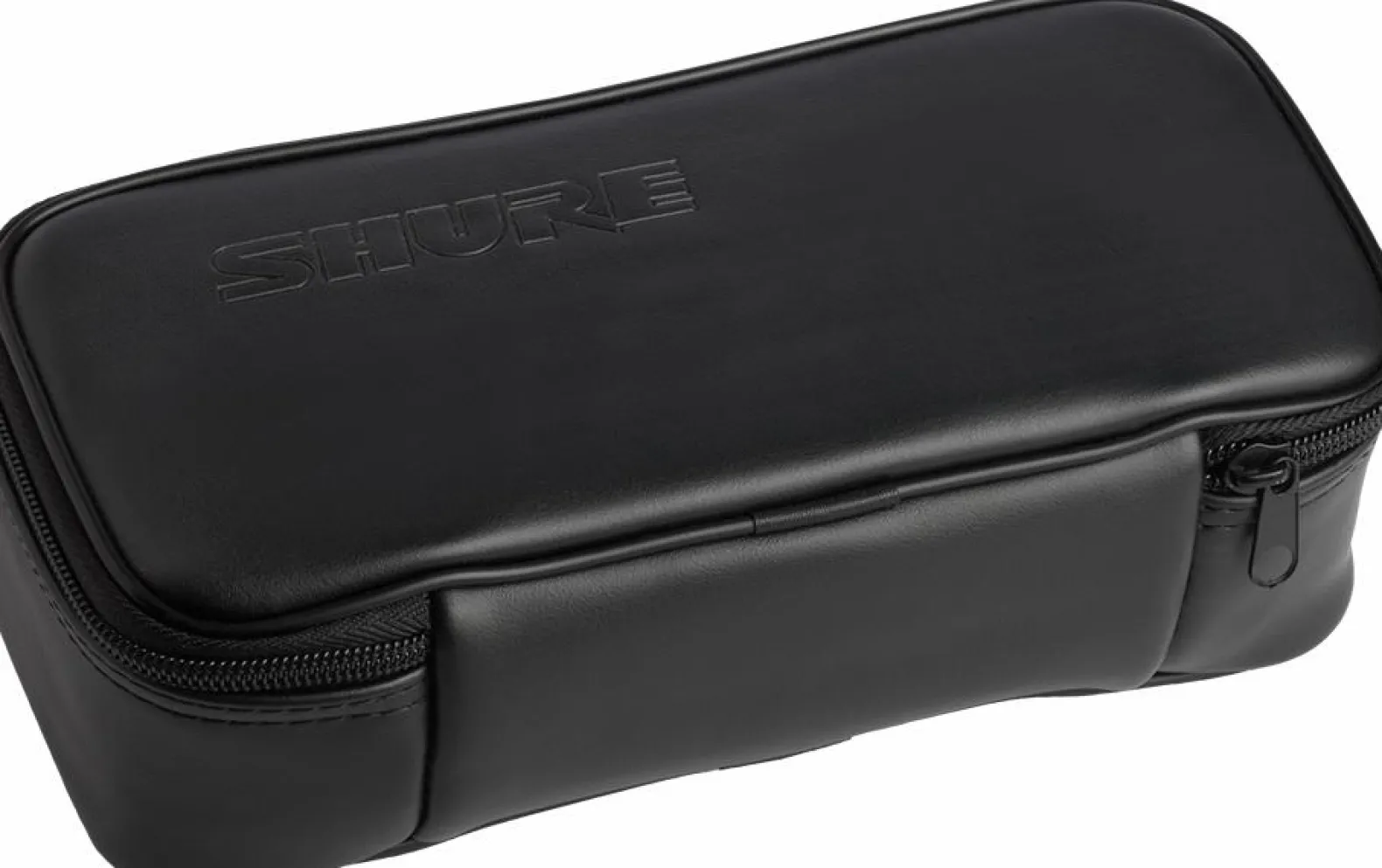 Padded zippered bag holds the KSM32 Cardioid Condenser Microphone.