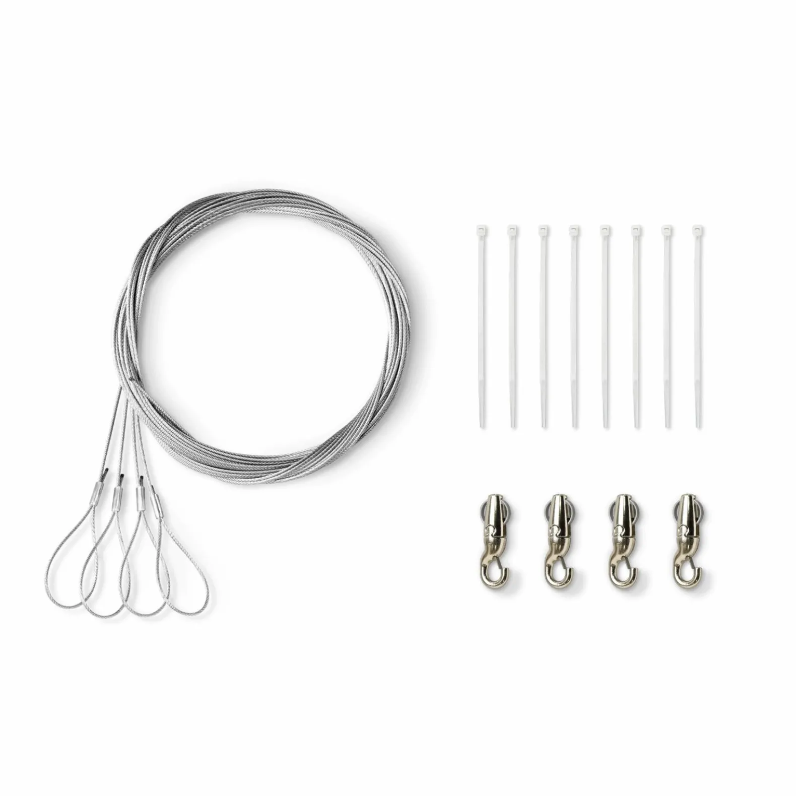 The A900-GM Gripple Suspension Mount Kit includes accessories to suspend compatible microphones from the ceiling. Using the kit, you can suspend the microphone and easily adjust the length of the suspension cables. Hardware to attach the suspension cables to the ceiling is not included.