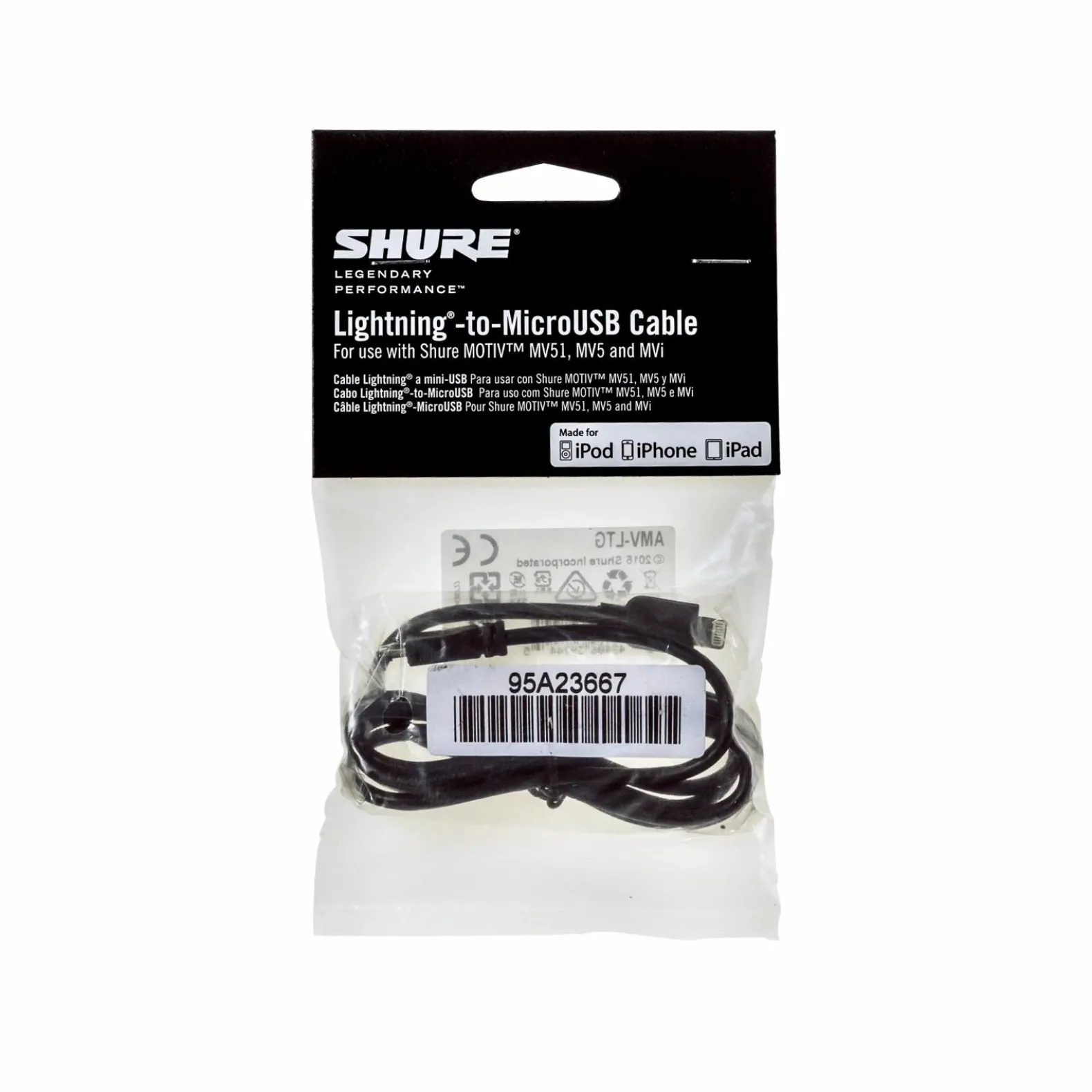 Replacement Micro-B to Lightning accessory cable for MOTIV products with Micro-B output. 1m in length. For use with MV88+, MV7, MV51, MV5 and MVi.