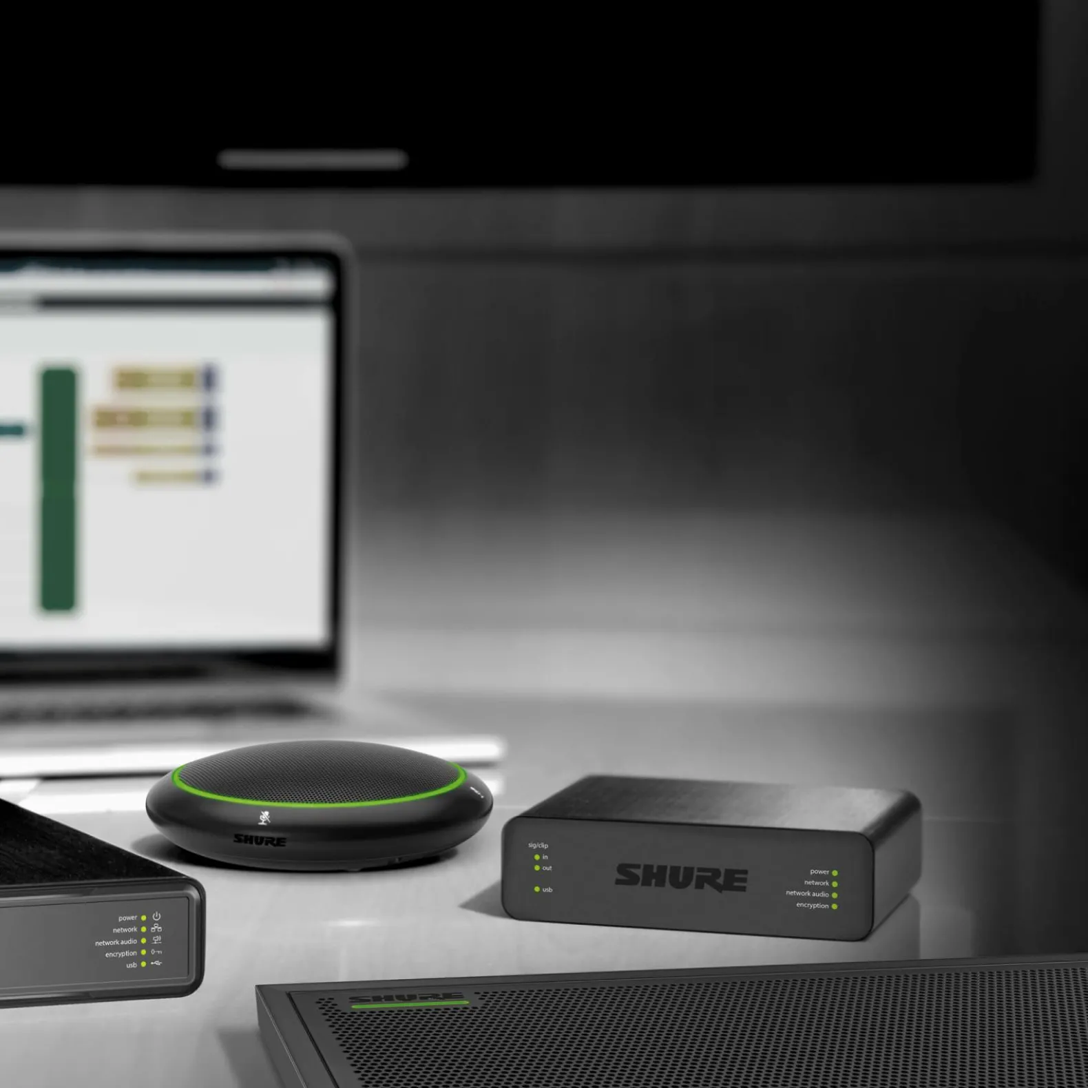 Converts up to four line / mic analog signals onto a Dante network for easy audio routing and browser-based control.