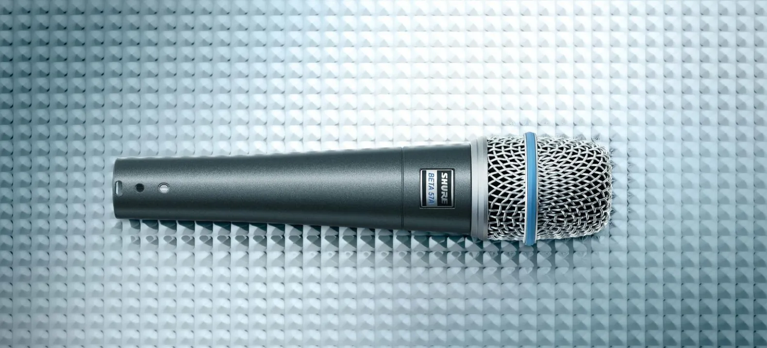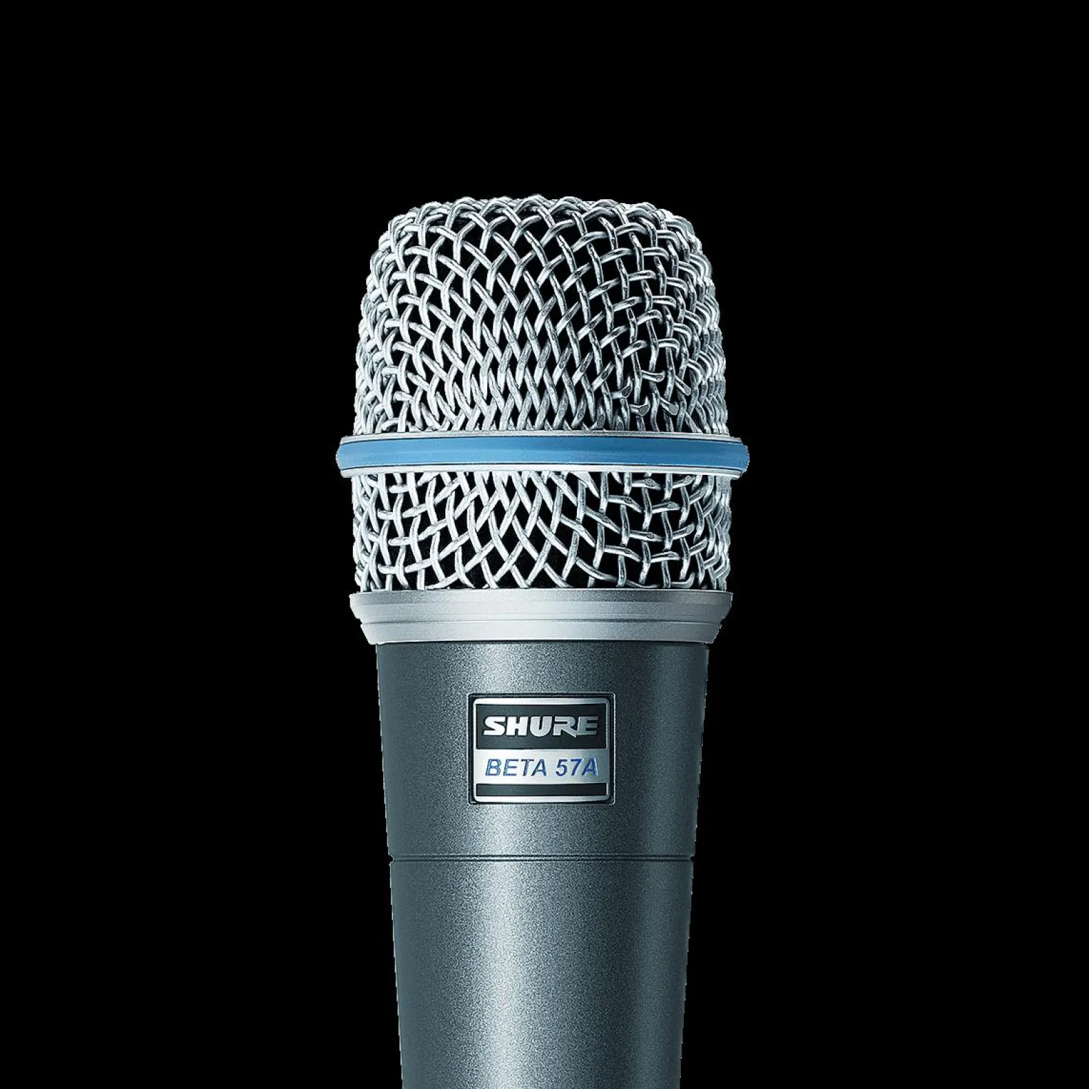 The Shure BETA®57A is a high output supercardioid dynamic microphone designed for professional sound reinforcement and project studio recording. It maintains a true supercardioid pattern throughout its frequency range. This insures high gain-before-feedback, maximum isolation from other sound sources, and minimum off–axis tone coloration.