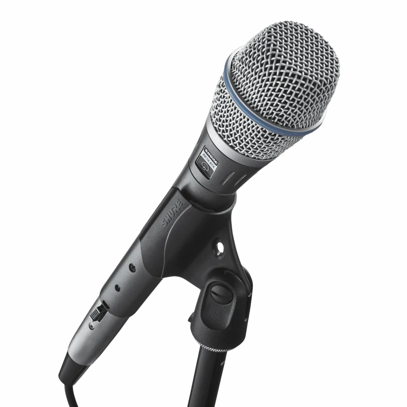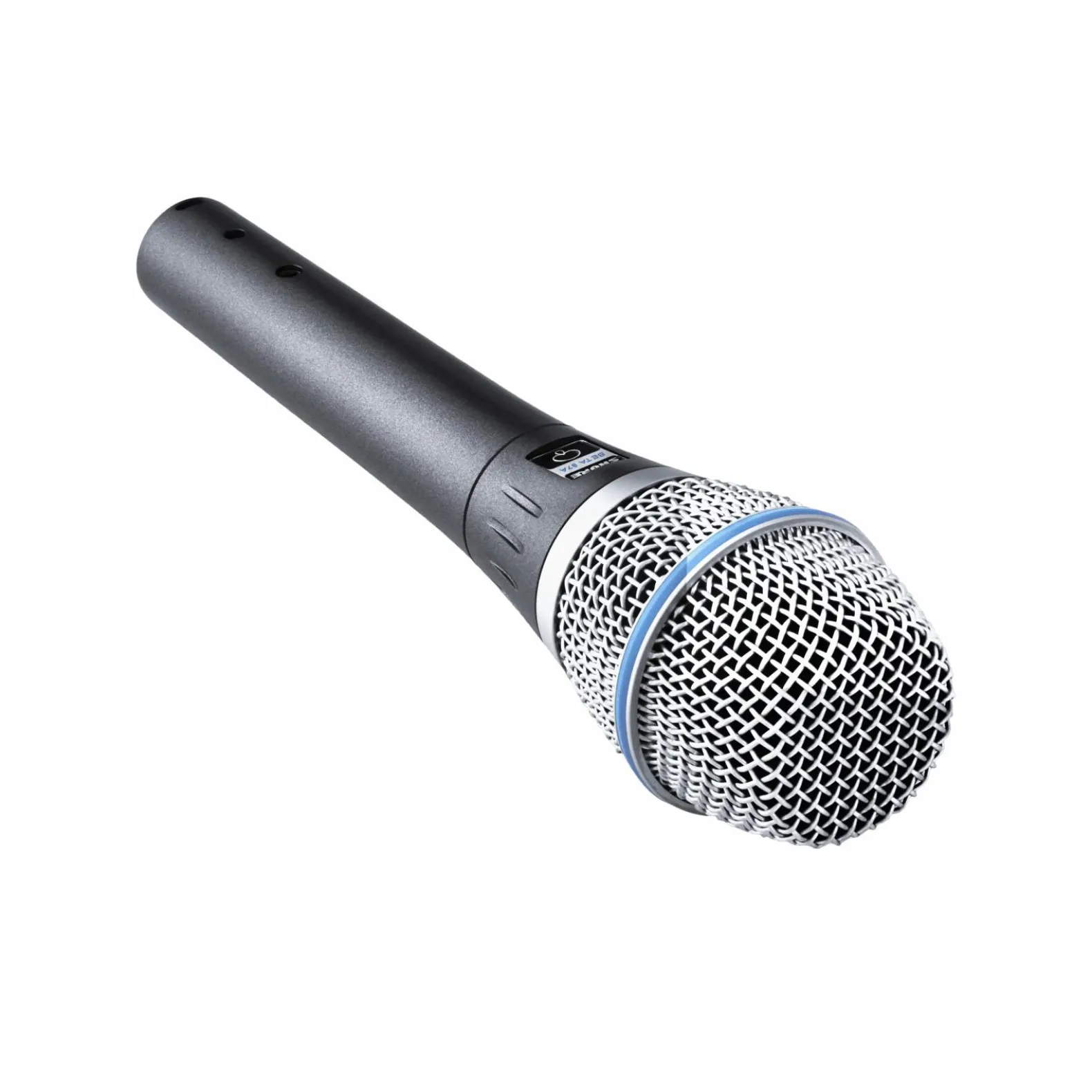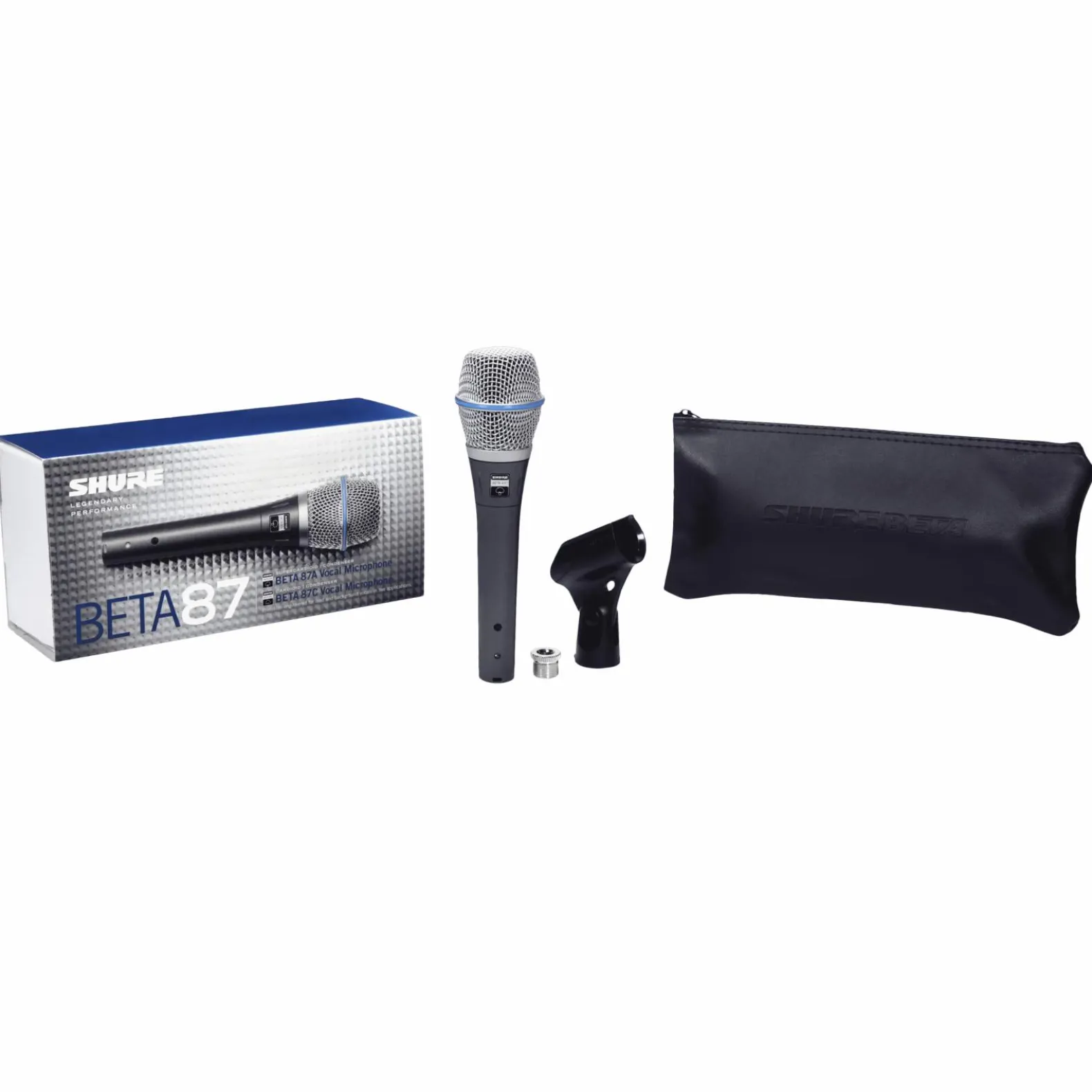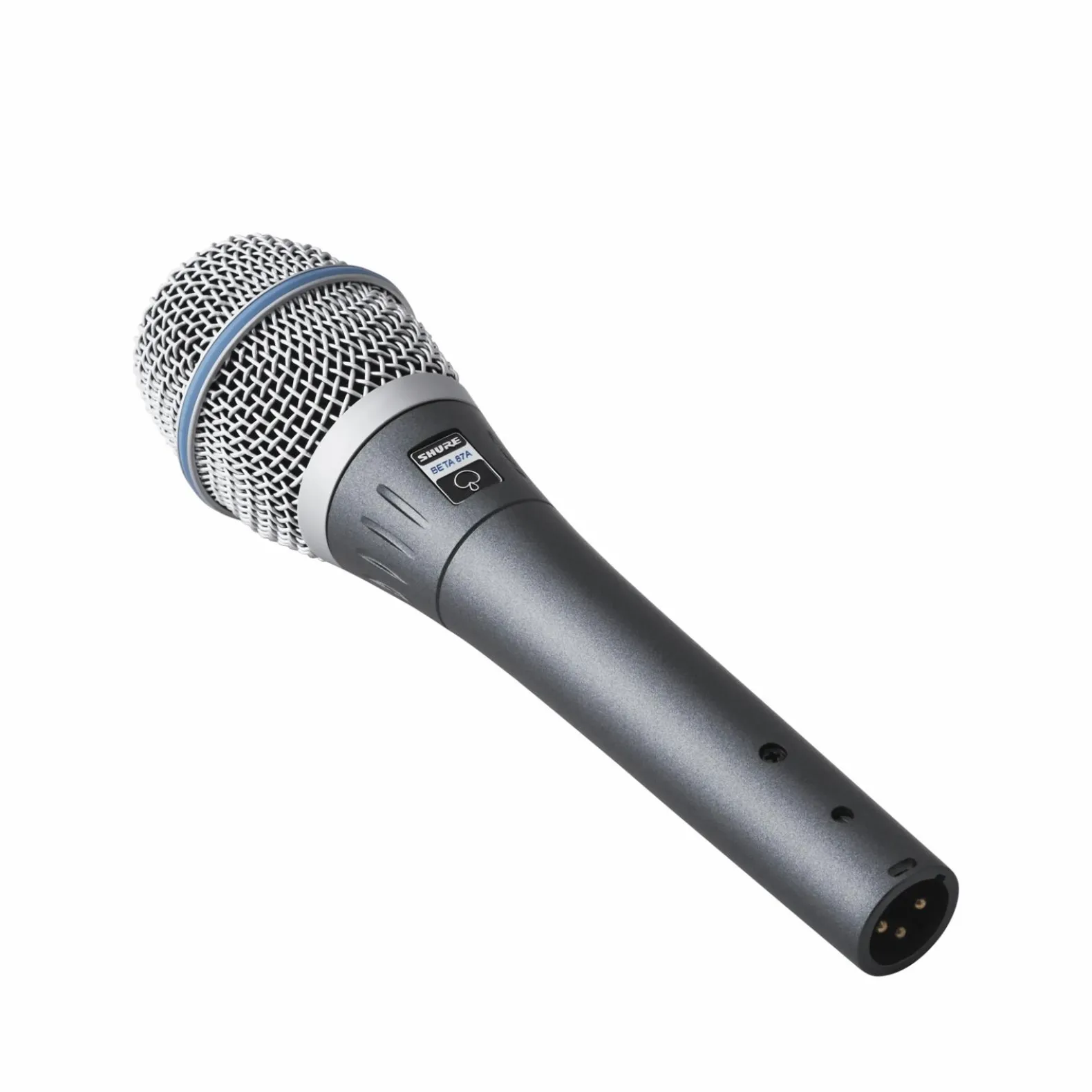 The Shure BETA®87A is a premium quality supercardioid hand-held electret condenser vocal microphone with exceptionally smooth frequency response and high sound pressure level capability. Used for professional sound reinforcement, broadcasting, and studio recording applications, the Beta 87A combines superb performance with the ruggedness needed for touring and field production.