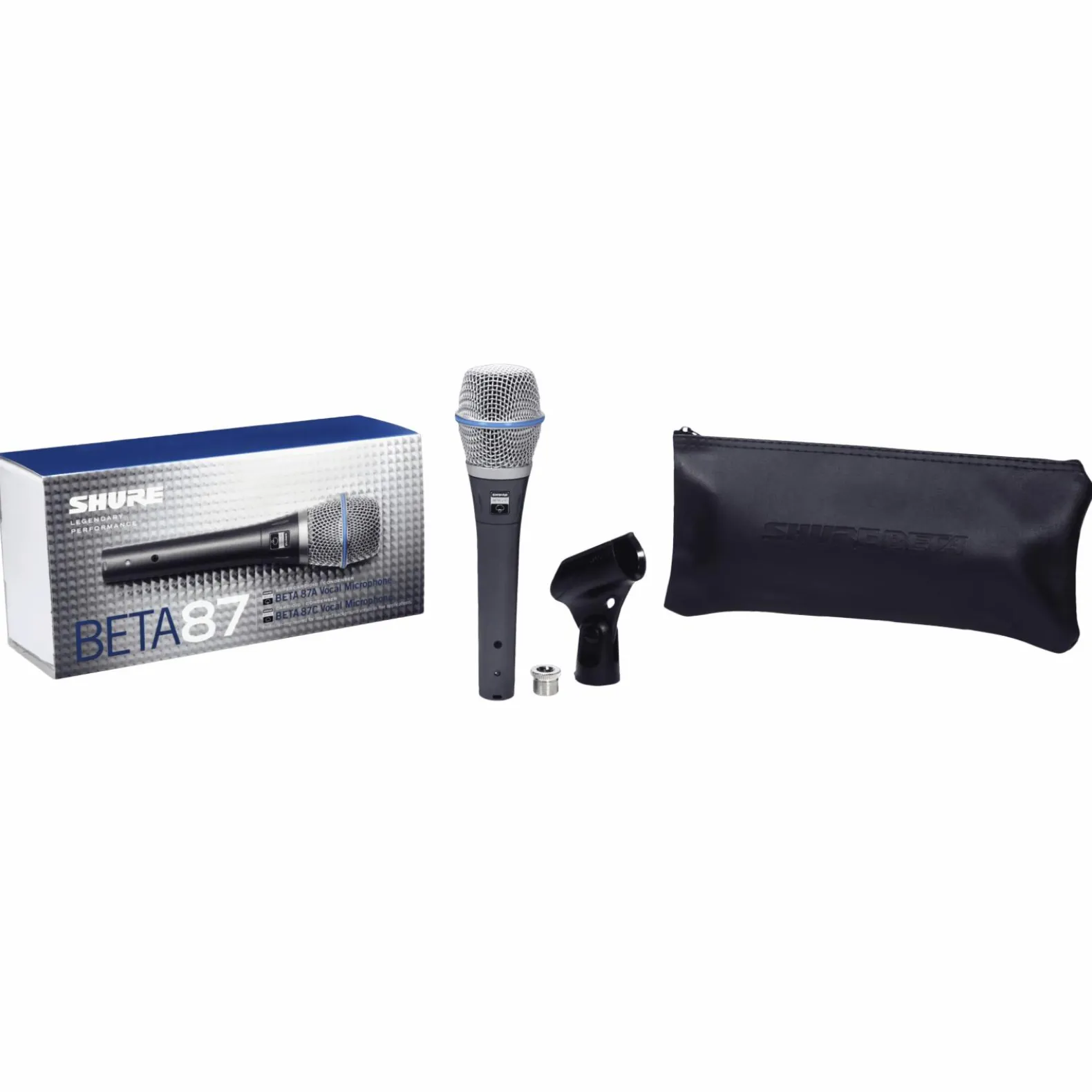 Excellent for touring professionals, the BETA®87C premium vocal microphone delivers studio-grade performance and a smooth, extended high-end frequency response in a cardioid condenser design.
