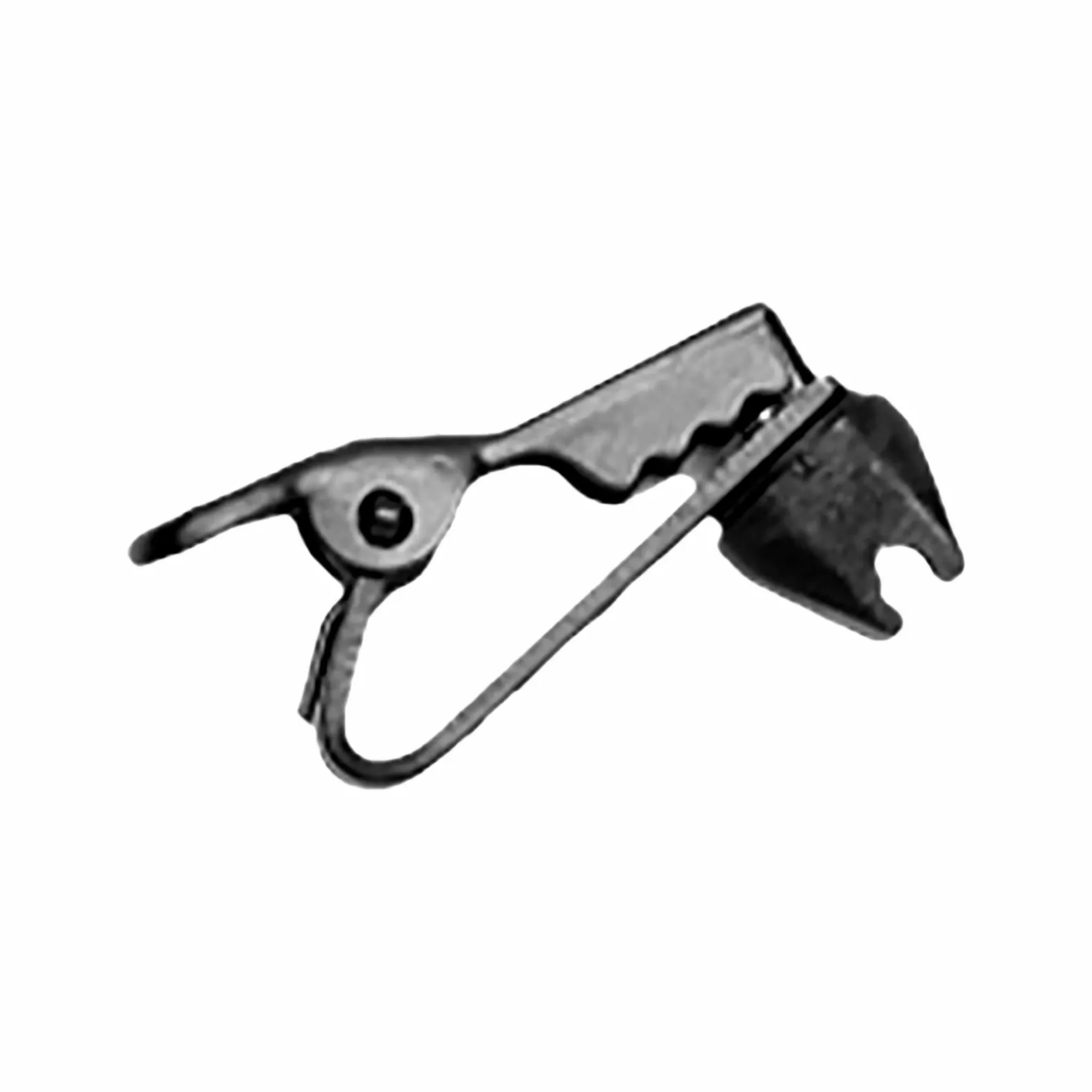 Black single and dual tie clip secures WL50, WL51, MC50B, and MC51B microphones to clothing.