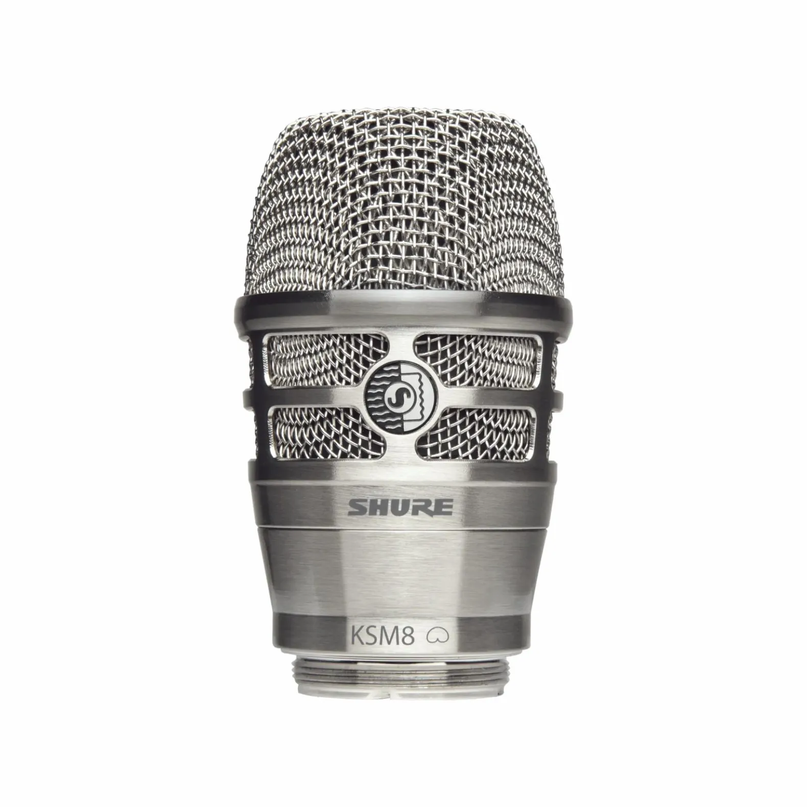 Wireless KSM8 capsule in brushed nickel enables wireless performance with the KSM8 Dualdyne Cardioid Dynamic Microphone.