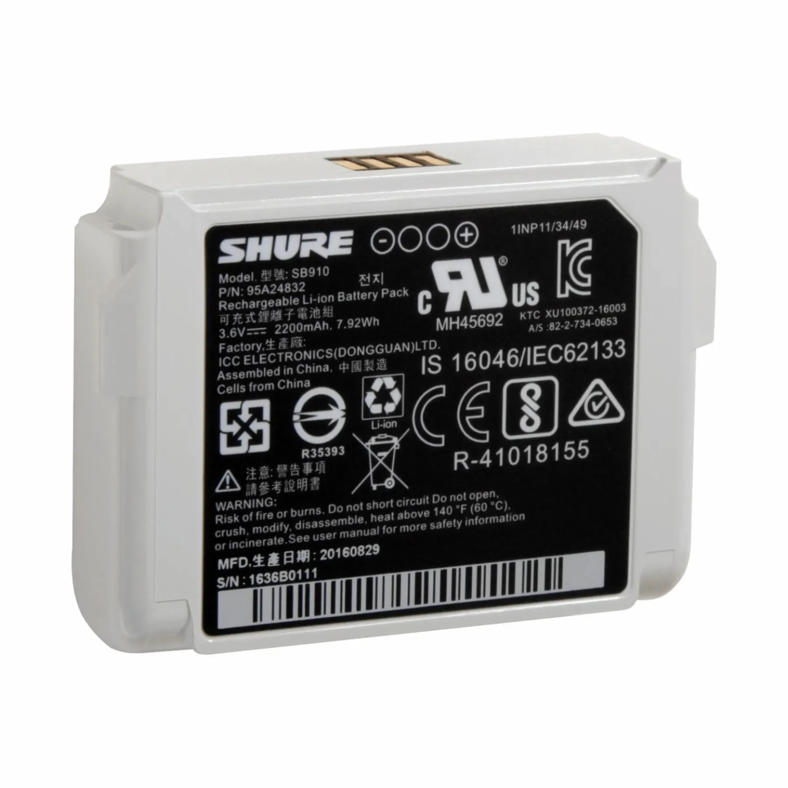 ADX1 bodypack transmitters exclusively use SB910 lithium-ion rechargeable batteries
