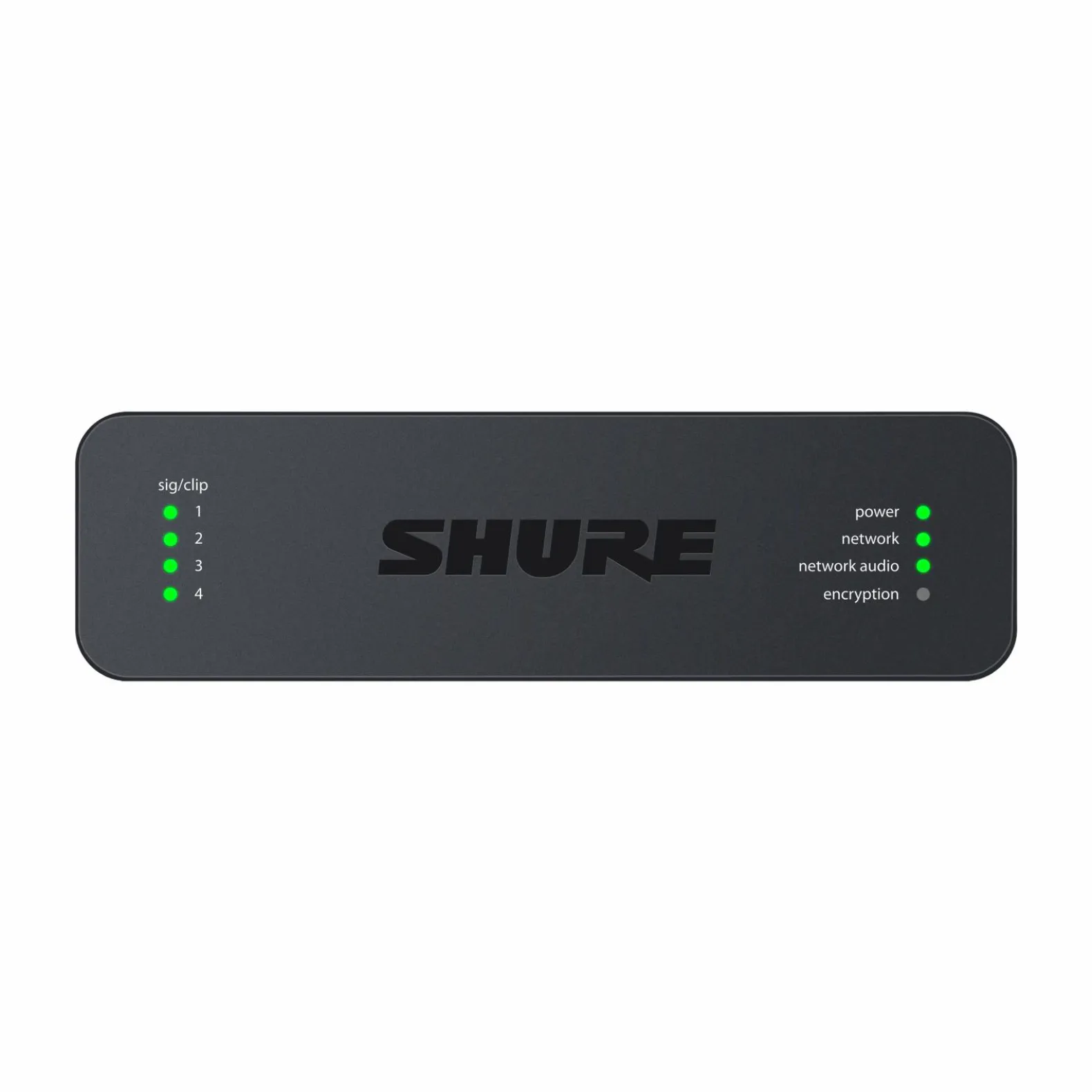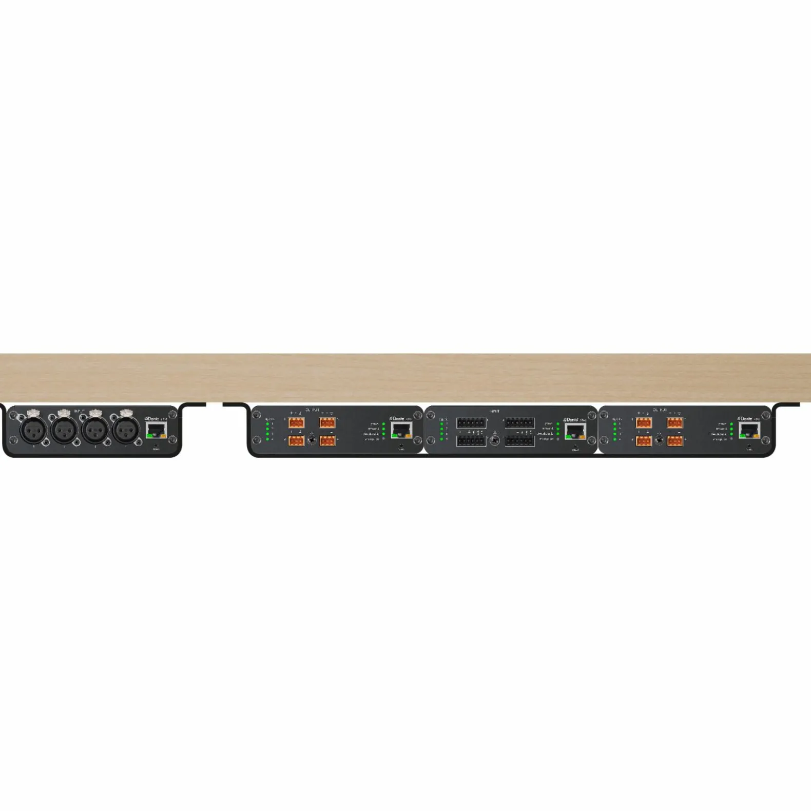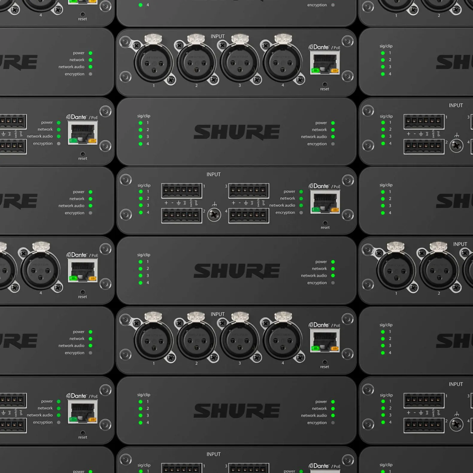 Converts up to four line / mic analog signals onto a Dante network for easy audio routing and browser-based control.