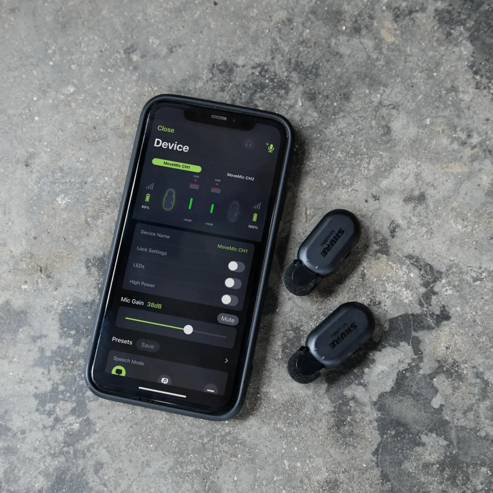 - MoveMic works directly with the Shure MOTIV mobile apps on most Android/iOS mobile devices with Bluetooth 5.0 and up.
