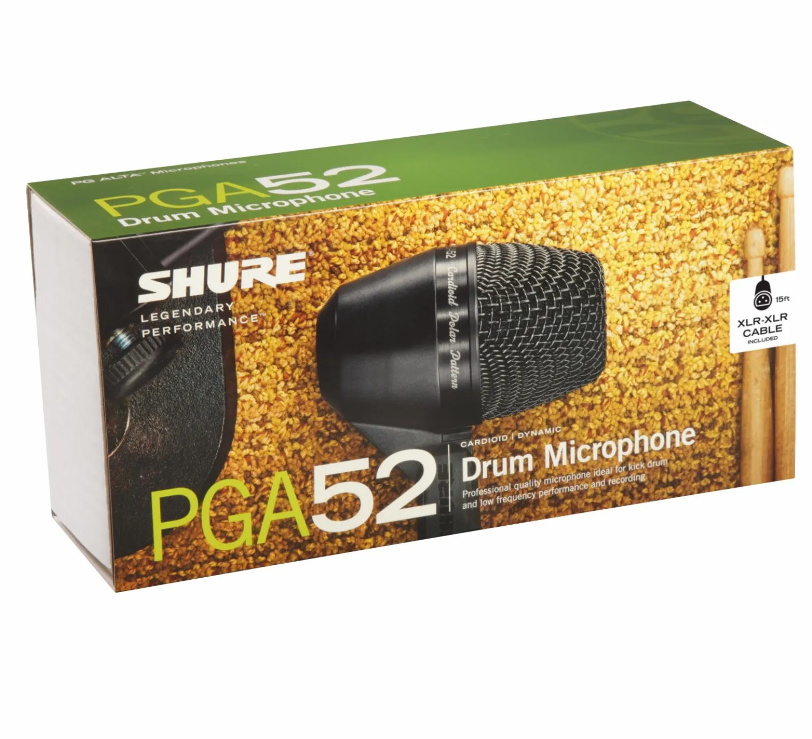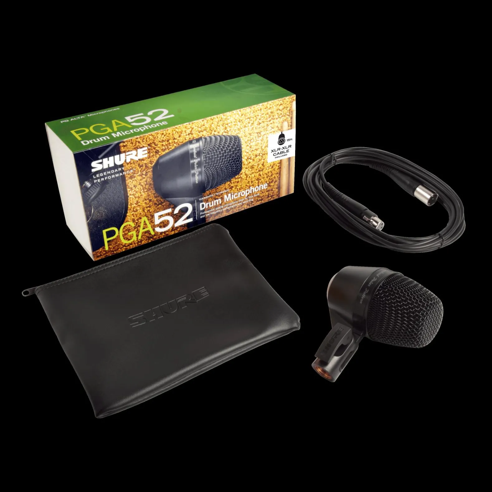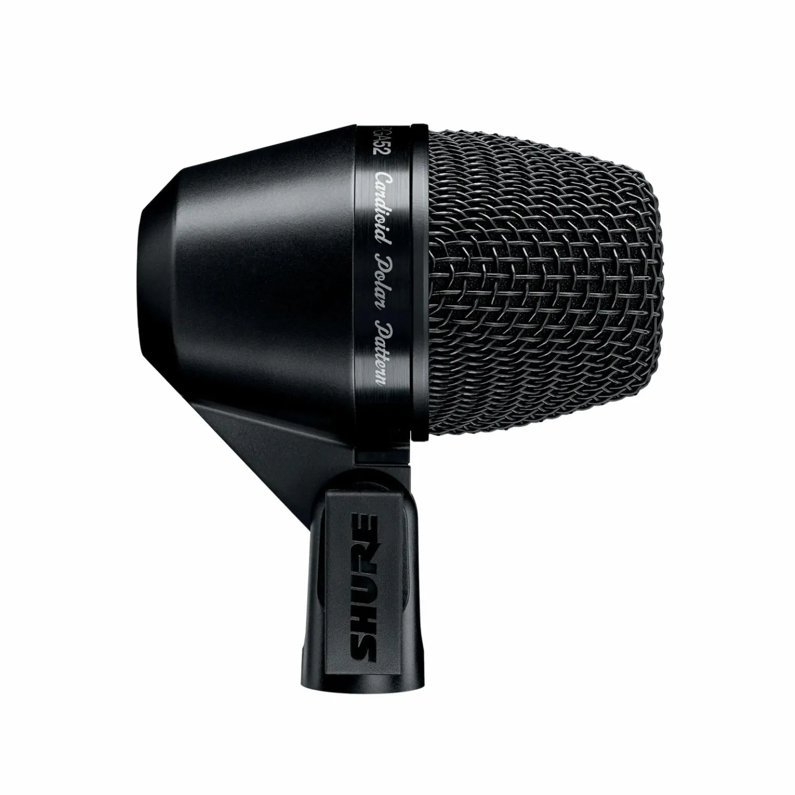 The PGA52 is a professional quality kick drum microphone with an updated industrial design that features a black metallic finish and grille offering an unobtrusive visual presence. Legendary Shure quality construction ensures exceptional performance in rigorous environments.