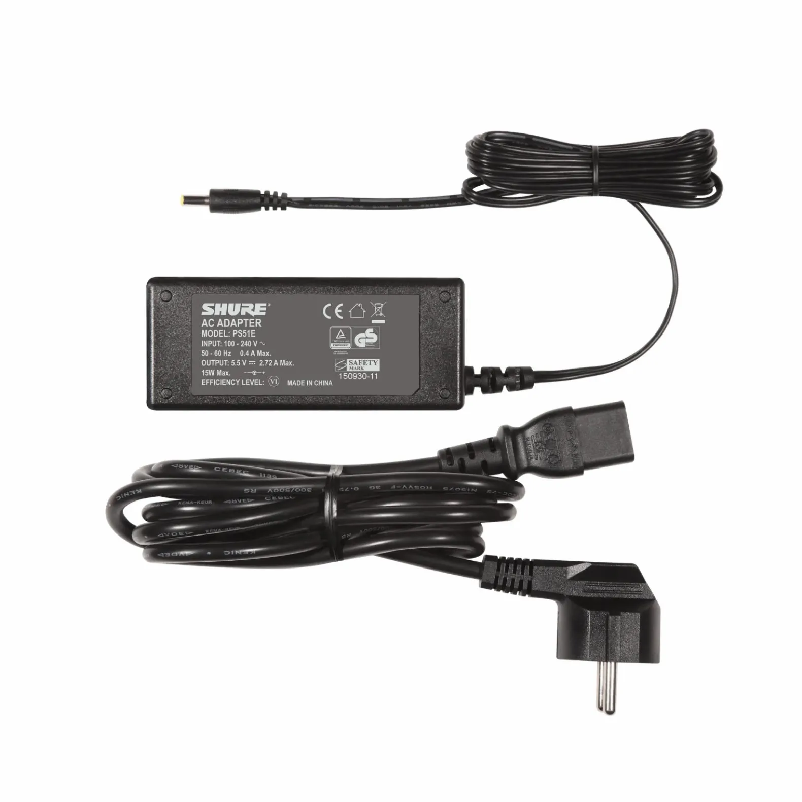 | Size | 5.5V DC in-line power supply for Shure charging modules, US Connector |