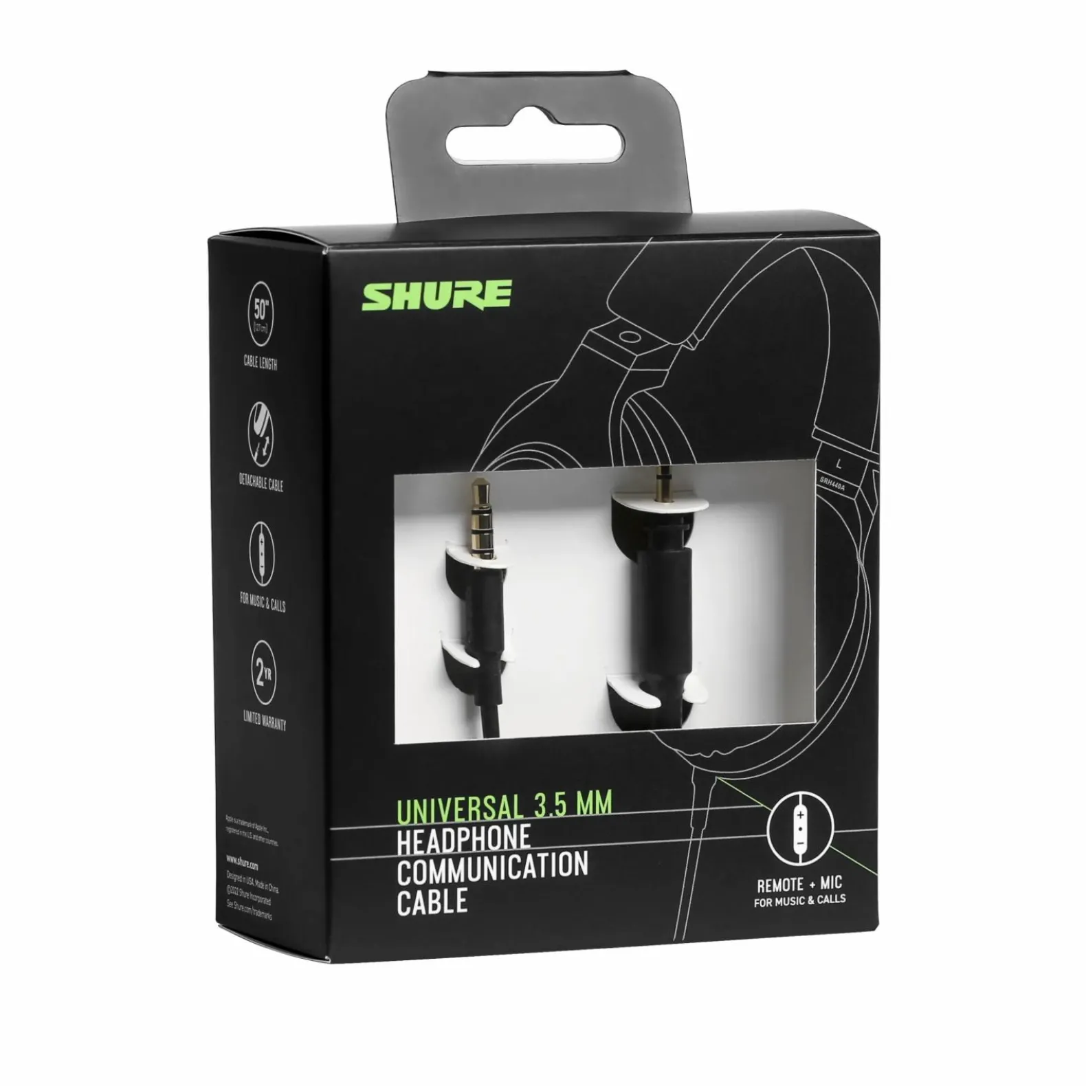 Detachable 3.5 mm communication cable with microphone and controls for Shure SRH440A and SRH840A Headphones. Features selectable operation for both Apple & Android devices with a 3.5 mm connection through switch on back of control pod. The inline microphone and remote ensures clarity for calls and voice prompts and provides volume and playback control. Connects to headphone via a detachable 2.5 mm locking bayonet that is compatible with Shure SRH440A and SRH840A Headphones.Measures 50 inches (127 cm) and includes a two-year warranty.Not compatible with other SRH Headphone models.