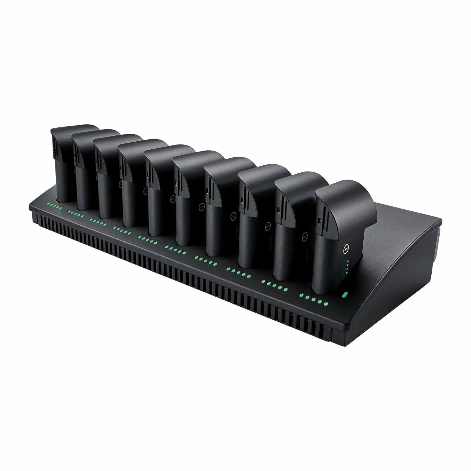 The SB930 Rechargeable Battery powers the MXCW640 Wireless Conference Unit for over 11 hours. LED indicators on the battery display charge status quickly and easily. Charging in the MXCWNCS Networked Charging Station takes just 1.5 hours for a 50% charge, and 4 hours for a 100% charge.