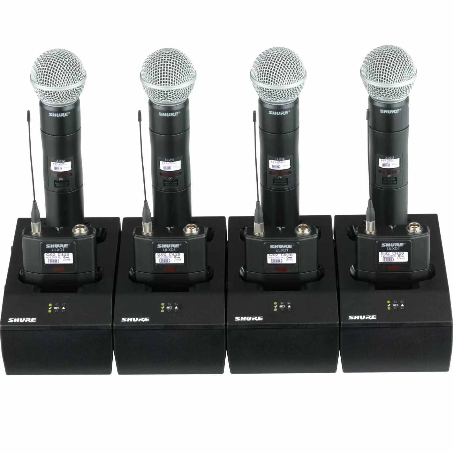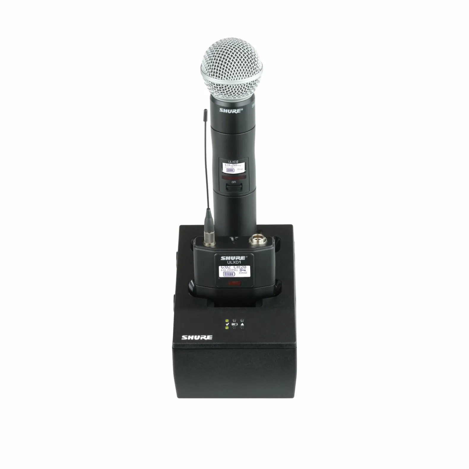 Dual docking recharging station charges SB900B batteries in or out of their transmitters. Features include the ability to run up to 4 SBC200 stations off 1 power supply.