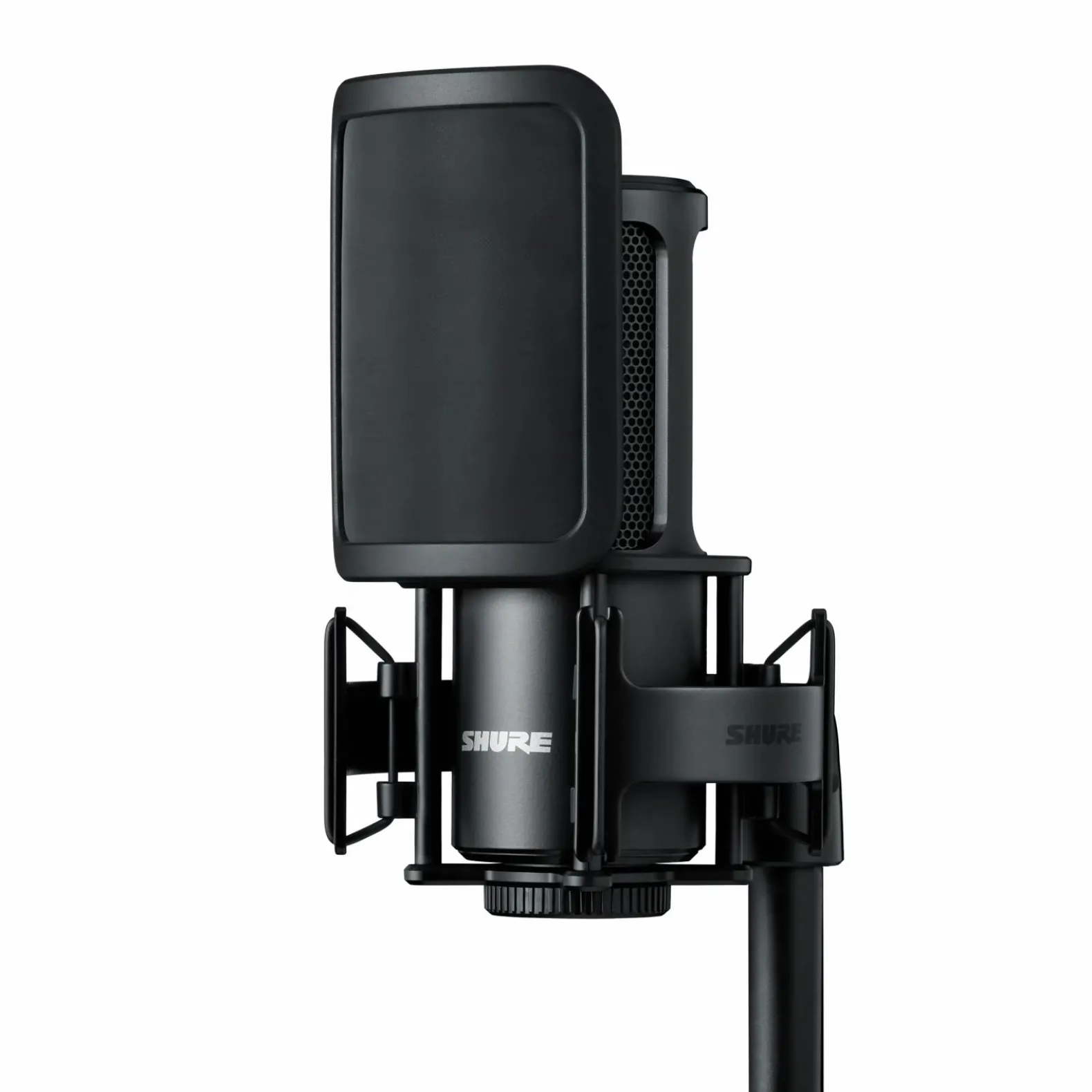 Included with the SM4 Home Recording Kit and available separately, the shock mount and detachable pop filter dampen undesired noises including rumbles, vibrations and plosive “pop” sounds. When combined with the internal pop filter of the microphone, the detachable pop filter creates a two-stage filtering system that dramatically increases the resistance of plosives.